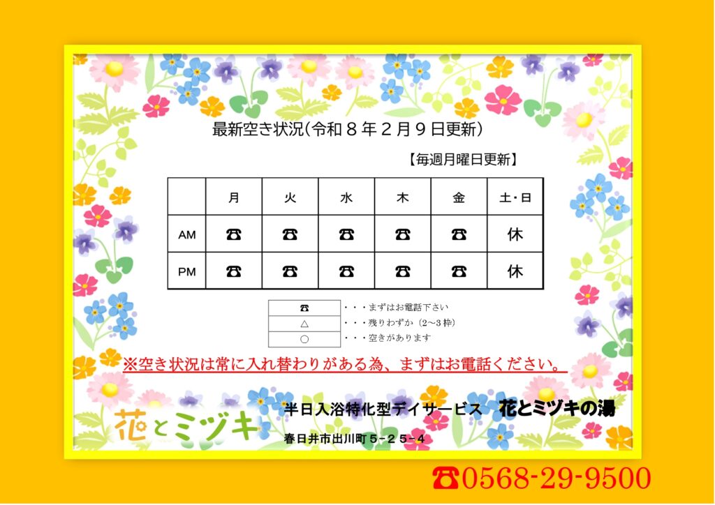 花とミヅキの湯 : TEL 0568-29-9500