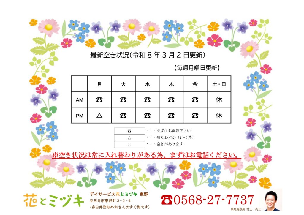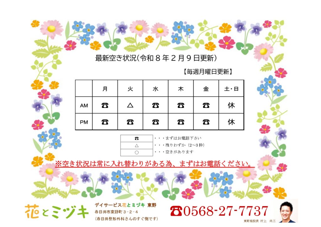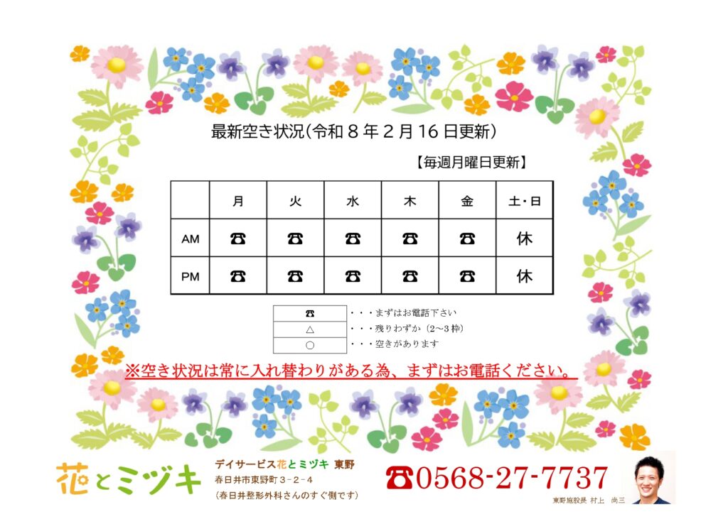 空き状況は常に入れ替わりがある為、まずはお気軽にお電話ください。