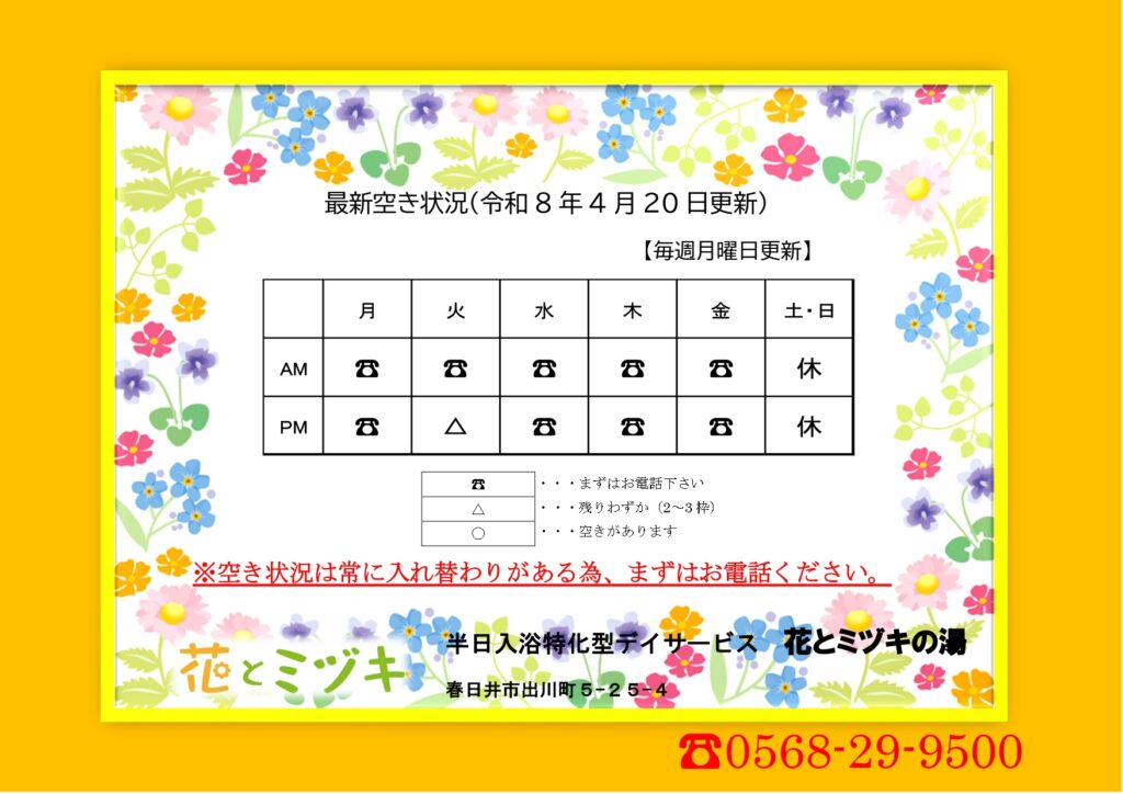 花とミヅキの湯ブログ/最新の空き状況をご確認いただけます